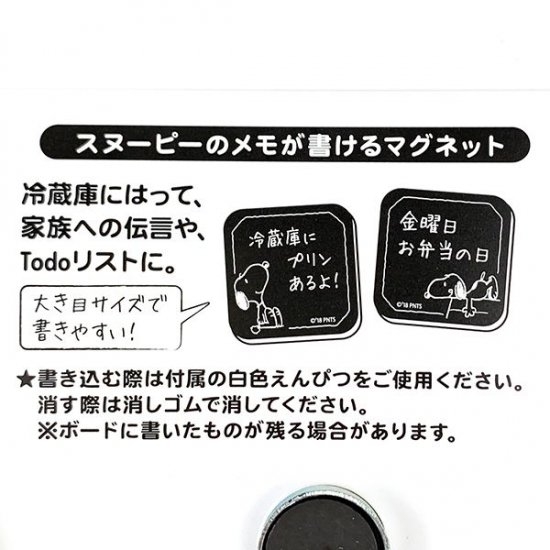 おはじき?いいえ、マグネットです。スヌーピーの黒板マグネットはメモが出来て消しゴムで消せる優れもの♪キッチンで大活躍!