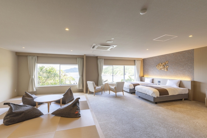 和室・洋室・和洋室・露天風呂付客室と用途に合わせてさまざまなタイプの客室をご用意。オーシャンビューを楽しめる新設の露天風呂付客室では、ひと際贅沢なひと時をお過ごしいただけます。大海原を眼下に、ゆったりとおくつろぎください。