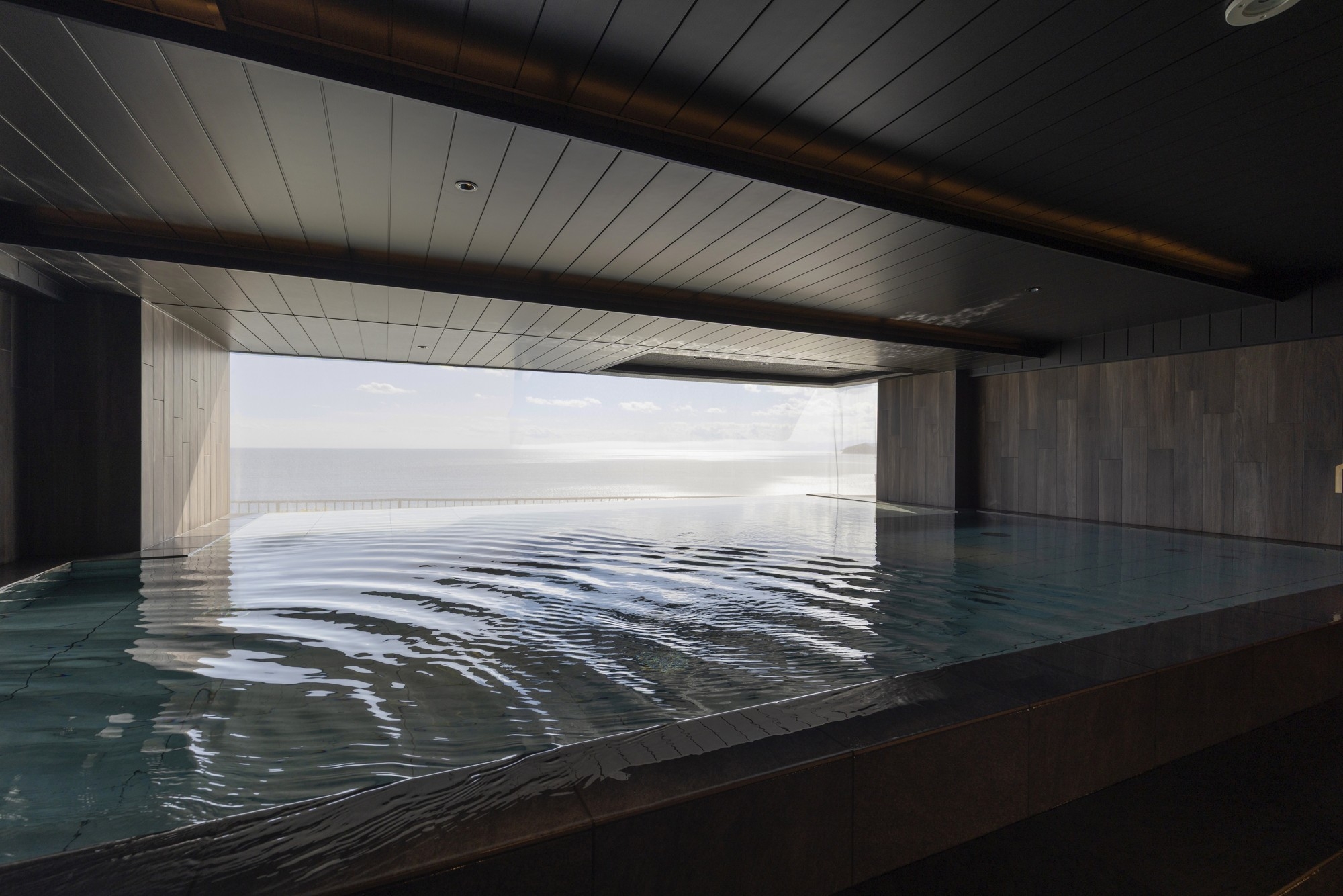 インフィニティ温泉からは、日本の夕陽百選に選ばれた志摩市浜島町の黄金色に染まる海の絶景をお楽しみいただけます。湯船に体を沈めると、まるで雄大な太平洋にそのままとけ込んでいくかのような、一体感を味わうことができます。落ち着きのある空間で、海を眺めながらゆったりと湯あみをご堪能ください。