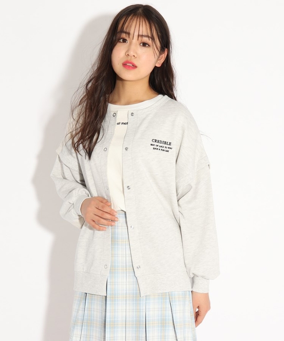 レイヤード見えがかわいい裏毛素材のカーディガンです。