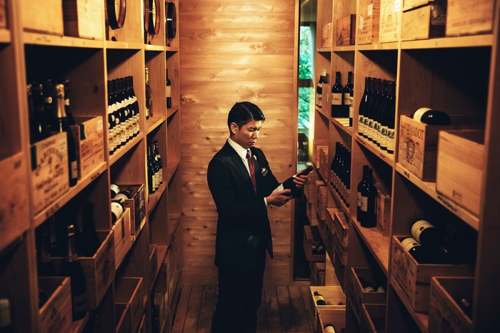 軽井沢ホテルブレストンコートの一角に、特別に設けられたワインセラーがあります。約2,000本のワインが保管されている、優に人が入れる大きさのワインセラーです。セラーが大きいと、扉の開閉による室温の上昇など環境の変化が少ないため、健全に熟成が進みます。また、ワインを最高の状態で保管するために、内装には木材を多用し、木の呼吸機能も利用しながら湿度を徹底的に管理しています。入室は土足禁止です。床には、保湿を高めつつカビを予防する、鹿沼土、活性炭、アルミナを使用しています。