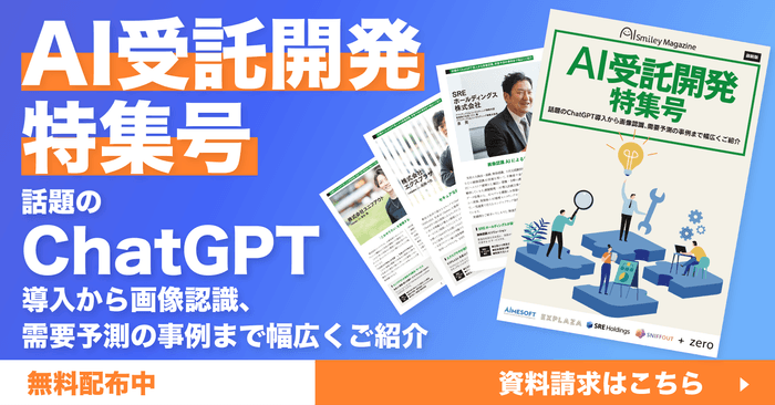「AI受託開発特集号」(PDF)をお求めの企業担当者様は、 以下お問い合わせフォームに必要事項記入の上、 お問い合わせ内容欄に「AI受託開発特集号」希望と記載し送信ください。