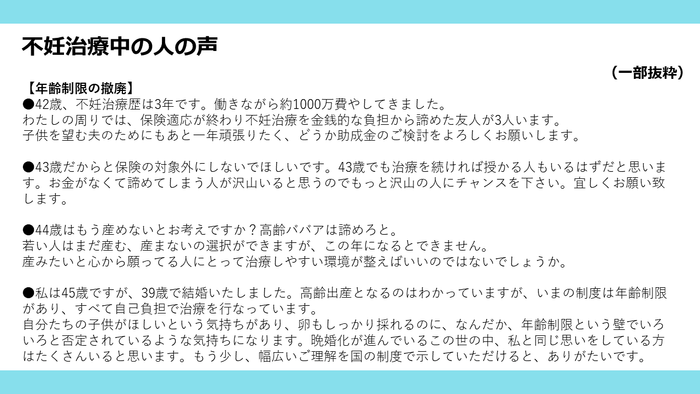 今回、全国でこの不妊治療助成金制度を復活させるために、より多くの署名と当事者の声を国に届けたいと思います。ぜひ、ご協力をお願いいたします。