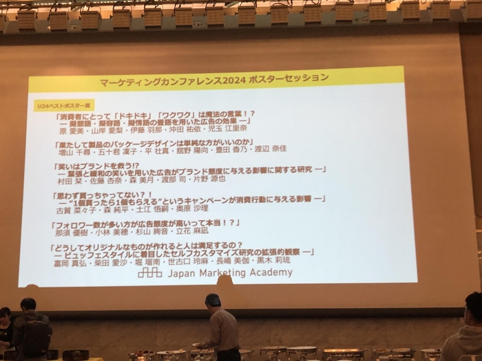 今回受賞したもう1チーム「消費者にとって「ドキドキ」「ワクワク」は魔法の言葉!?擬態語・擬容語・擬情語の畳語を用いた広告の効果」(原愛美さん、山岸愛梨さん、伊藤羽那さん、沖田祐依さん、児玉江里奈さん)はベストポスター賞1位を獲得しており、2025年3月に東京会場(法政大学)で開催される日本マーケティング学会三都市カンファレンス2025で、新設されたU24オーラルセッション枠で口頭発表予定です。ぜひ、ご注目ください。