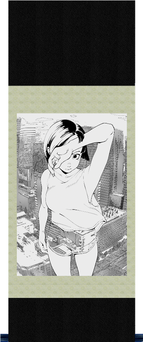 イラスト(特にデジタル作品)と現代美術作品の境界などそもそもないかのような意識のもと、しかし、大量消費されるイラストやその印刷技法に対する独自の解釈で現代美術作品を産み落とすことに成功。シルクスクリーン、ジークレー(デジタル版画)、浮世絵木版画。そしてハンドペインティングと多様な作品は全てがユニーク作品(浮世絵版画作品除く)。大量消費を前提にした技法であえてユニーク作品に限定することで、過去、商業品からの評価の日本文脈に一風を起こそうとしている。そこには絵柄・アウトプットの方法などスタイルのこだわりはなく、常にアップデートし続けている姿がある。昨今の都会的な女性キャラクターを描くアーティストとは一線を画すアプローチにチャレンジし続ける現代作家。最近の主な展示に2024年9月KIAF(ソウル/アートフェア)、5月one.small gallery(ボストン/個展)、3月571 Art Space(杭州/グループ展/)、2月Street Dreams Studios Tokyo(青山/個展)、Gallery Joyana(コートダジュール/グループ展)など。