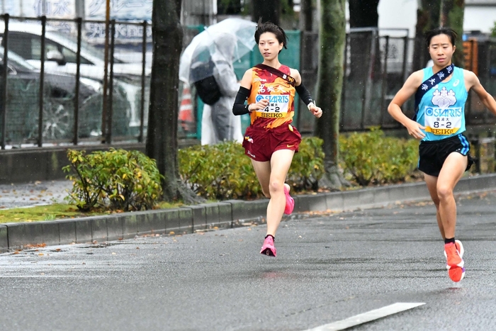 5.8kmの3区は主将の米澤奈々香選手(人間学部4年)が担いました。従来の区間記録を上回る18分26秒の区間2位で、順位を2つ上げて4位で中継しました。