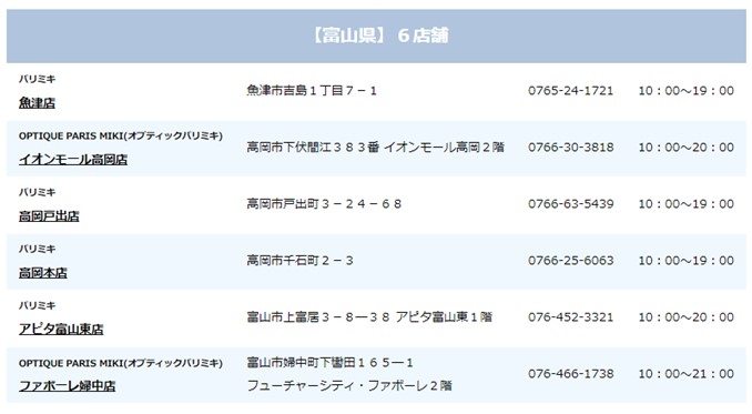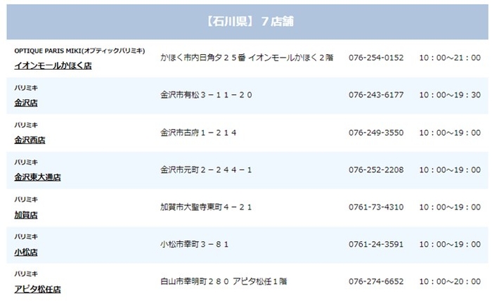 連絡先 TEL:0761-73-4310(パリミキ加賀店)