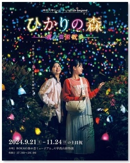 夜間限定の光のアート作品が夜の六甲山を幻想的に彩ります。また、会場に設置された作品が光に照らし出され、昼間とは違った表情をお楽しみいただけます。10月中旬~11月中旬には、ライトアップされた木々の紅葉もお楽しみいただけます。(見頃のピークは10月下旬~11月上旬の見込み)