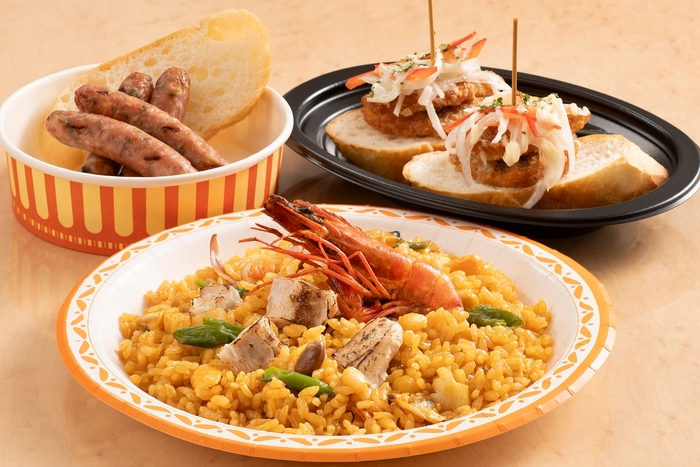 直径1mの50人前の大きな鍋で作った「大鍋パエリャ」を日にち限定で販売します。パエリャにはシロサバフグを使用しています。さらに伊勢志摩産アイゴのピンチョスや、あおさ海苔を練りこんだウインナーの炭火焼も販売します。香ばしい香りに包まれた広場で、まるでスペインにいるかのような異国情緒あふれる秋のひとときをお楽しみください。※天候不良等により中止または販売時間を変更する場合があります。