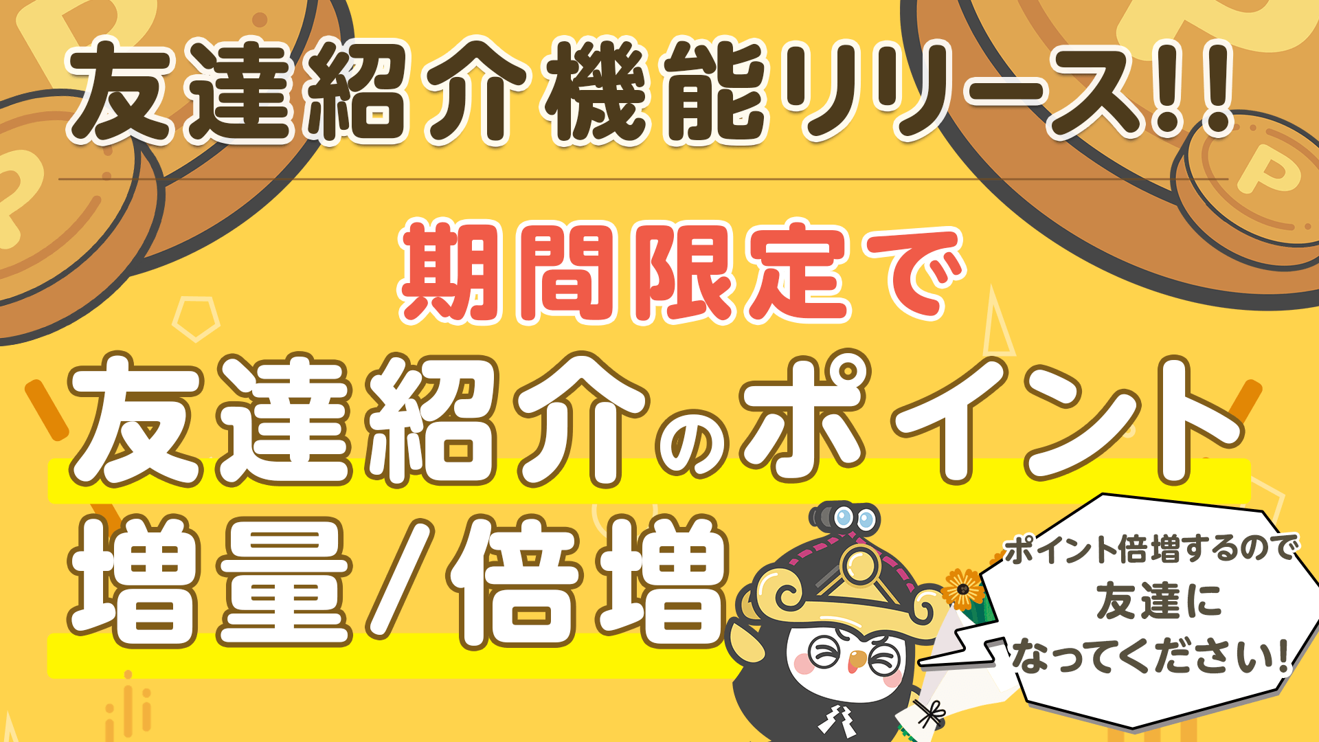 期間中、友達紹介をした際のポイントが50pt→100ptに倍増!