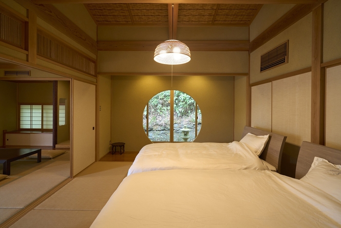 また、「スイートヴィラ マンスリー 鎌倉 雪ノ下 大御堂」が位置する場所は、かつて源頼朝が大御堂と称された勝長寿院を建立し、父の源義朝の菩提を弔い、北条政子が晩年を過ごし、長らく源氏の菩提寺として栄えた地。その跡地を悠然と見下ろす広大な敷地に佇んでいます。鶴岡八幡宮や永福寺など鎌倉の歴史を感じられる観光スポットを巡る拠点として最適で、伝統的建築と現代の使いやすさを兼ね備えた魅力のある大型施設となっています。室内は2LDKのゆとりのある間取りで、土間にある薪ストーブが非日常空間を演出し、静けさを楽しみながらおくつろぎいただけます。寝室は和室にベッドが2台、布団も2セット用意されており、定員は最大6名です。さらに、ペットと一緒にご宿泊することもできます。