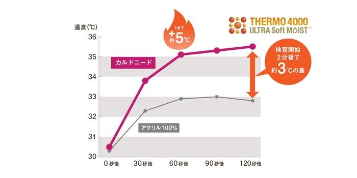 実証試験では、使用開始からわずか1分で約5℃温度が上昇し、一般的な毛布に比べて約3℃高いぬくもりを保つ結果が得られています。