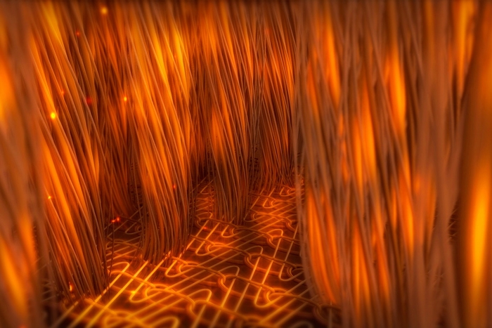 「CALDO NIDO(カルドニード)」のいちばんの特長は、新しく開発された“新ダブル発熱”素材「THERMO 4000 ULTRA Soft MOIST」 にあります。この素材は、3種類の繊維がそれぞれの役割を持ちながら重なり合い、ぬくもりを生み出す構造です。