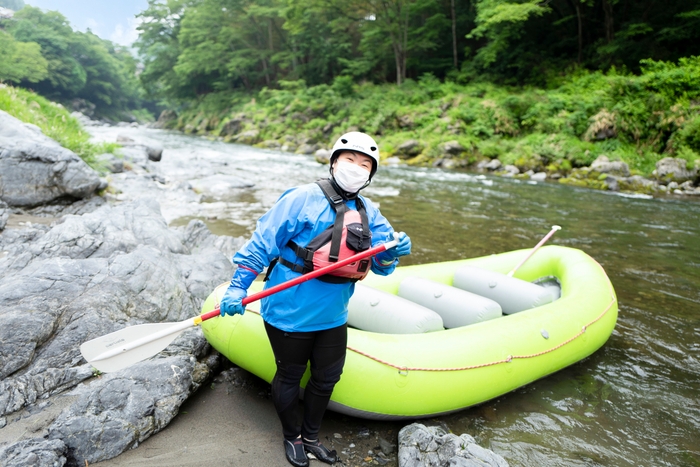 ガイドを務めるのは、ラフティング世界選手権2位の経歴を持つ柴田大吾さん。現役引退後、御岳渓谷で「みたけレースラフティングクラブ」を立ち上げ、リバーアクティビティサービスを提供しています。