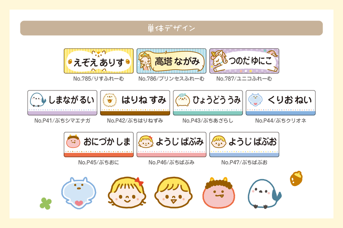 お名前シール販売を23年以上つづけている強みを生かし、お子さまの成長と共にお名前シールに求められる変化を聞き、日々改善を続けています。2025年1月に新しいデザインを20種類、追加しました。