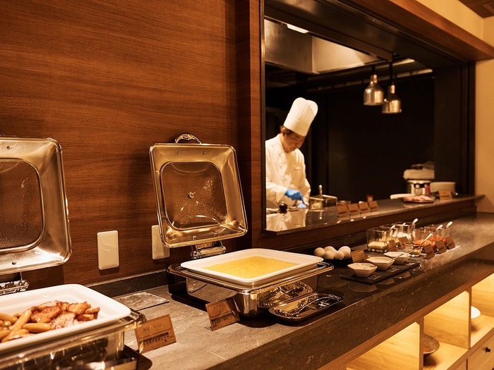 レストラン正面に置かれた象徴的なグリルでじっくりと焼かれる絶品のグリル料理や島の素材を使った逸品の沖縄料理をビュッフェスタイルでご堪能いただけます。 目の前に広がるプールを眺めながらの朝食もビュッフェスタイルでご提供。