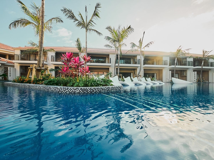 全客室50m²以上のオールスイートルーム。全室キッチン、各種家電、Wi-Fi完備。OceanWingの1階客室にはプライベートプールを完備。
