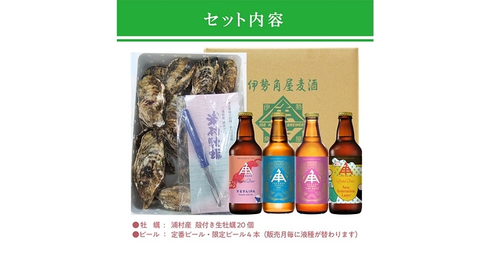 伊勢角屋の店舗でも提供している、鳥羽の海で育った名品「浦村かき」とのセットです。安心安全、生でも食べていただける極上品質をお届けします。生食はもちろん、焼いても蒸しても、揚げても絶品!ビールも牡蠣に合わせてペアリングしました。