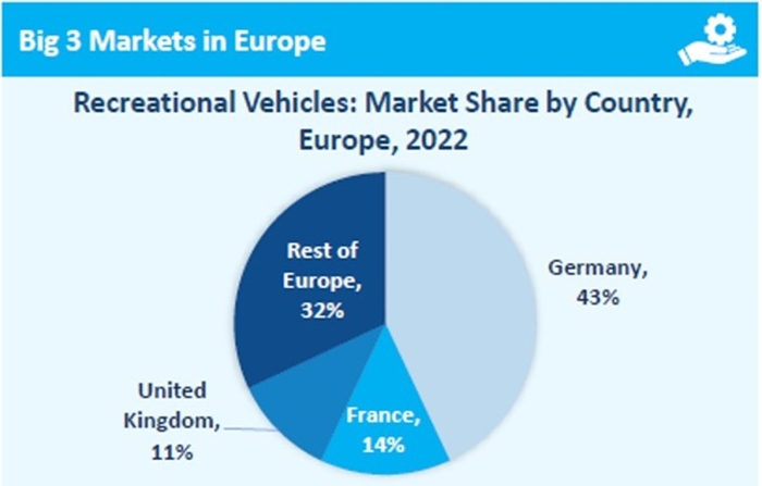 モーターホームからキャンピングカー、キャラバン、キャンプや冒険活動から、フードトラック、移動オフィス、緊急車両といった商業用途まで、個人所有からレンタルまで、欧州のレクリエーショナル・ビークル(RV)市場は成長軌道に乗っています。2022年の時点で、ヨーロッパにおける新規 RV 登録総数は 183,509 台と推定されており、ドイツ、フランス、英国が市場シェアの 68% を占めています。興味深いことに、ヨーロッパの大手 RV ビルダーの 70% 近くが、RV ベースモデルの入手可能性や、シャーシやエンジンなどの重要なコンポーネントの入手可能性などの利点により、ドイツで車両を製造しています。