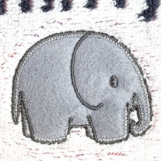 ミッフィーだけでなくアニマルたちも大集合していて、キュートなデザインです。しかも右下には、ゾウさんのアップリケ付き♪