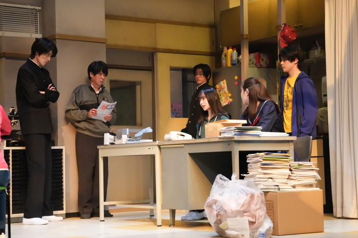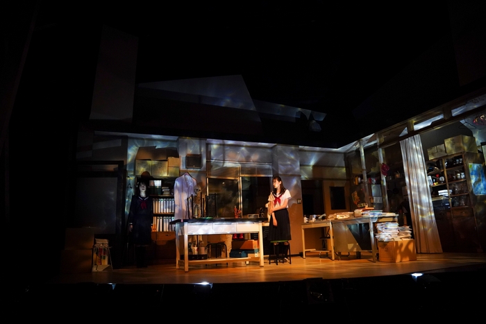 初日公演を前にゲネプロを公開。演劇部の部室にもなっている「理科準備室」をメインに、照明や音響をはじめ、ホラー的な仕掛けも多く用意されていて、緊迫感、臨場感のある雰囲気を作り出している。「Jホラー+舞台劇」というエンタメの新しいスタイルを見せてくれる作品に仕上がった。