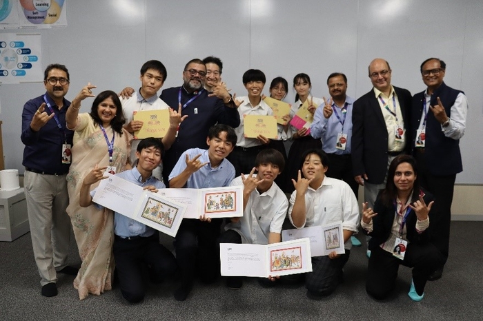 インドの学校経営者など15人の教育リーダー代表団が7月12日、岡山市北区の学校法人加計学園を訪れ、岡山理科大学で好適環境水による陸上養殖施設や恐竜学博物館を視察。岡山理科大学附属高等学校では国際バカロレア(IB)コースの生徒たちによるインド研修(今年3月)の成果発表を聞いて、盛んな拍手と喝采を送っていました。