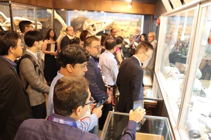 続いて、恐竜学博物館(C2号館)では、タルボサウルスやプロトケラトプスの骨格標本に見入ったり、学生が化石のクリーニングをしている姿をスマホで撮影したりするなど、恐竜研究の世界に興味津々の様子でした。