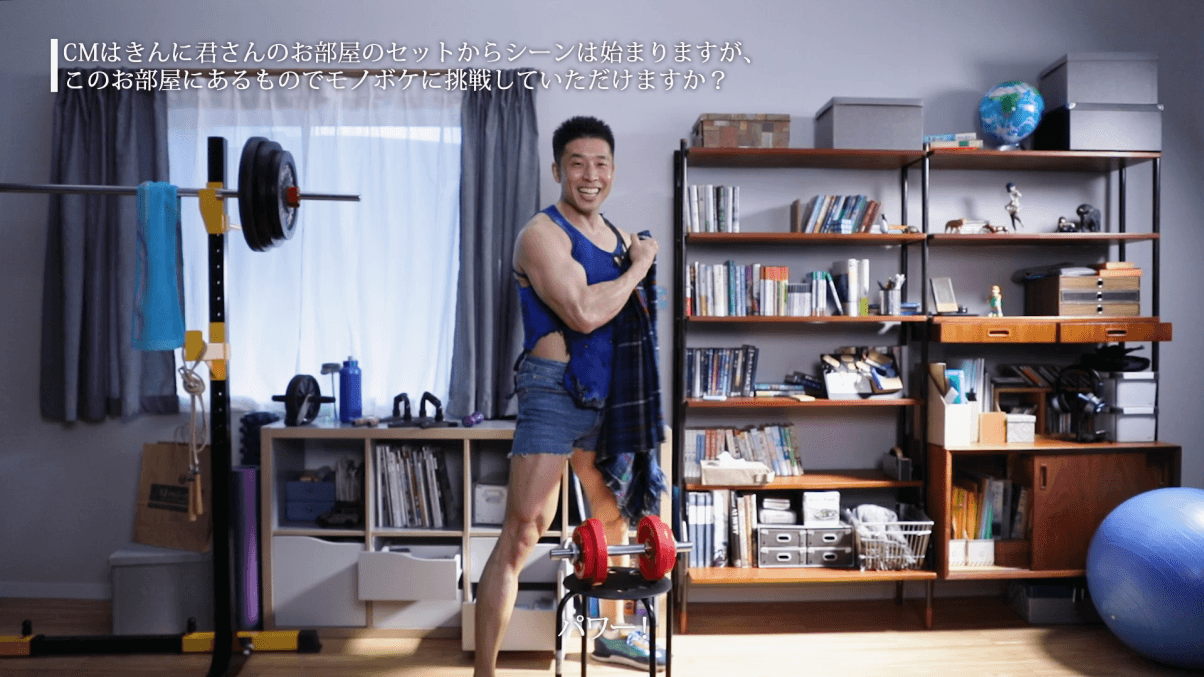 ―CMはきんに君さんのお部屋のセットからシーンは始まりますが、