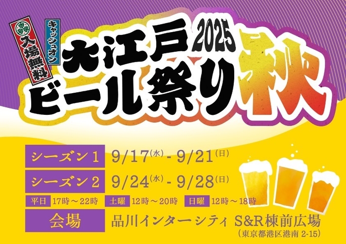 株式会社東京クラフトビールマニア(東京都中央区)による「大江戸ビール祭り実行委員会」は、2025年9月17日(水)から9月28日(日)の期間、品川インターシティS&R棟前広場にて「大江戸ビール祭り2025秋」を開催いたします。