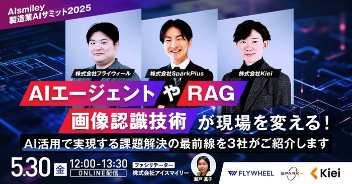AIポータルメディア「AIsmiley」を運営する株式会社アイスマイリー(東京都渋谷区、代表取締役:板羽晃司)は、2025年5月30日(金)12時から製造業AI活用をテーマにウェビナーを開催します。