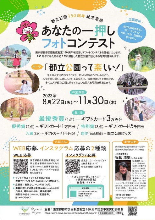 ・東京都都市公園制度制定150周年記念事業特設サイトにて入賞作品を発表します。(2024年2月予定)