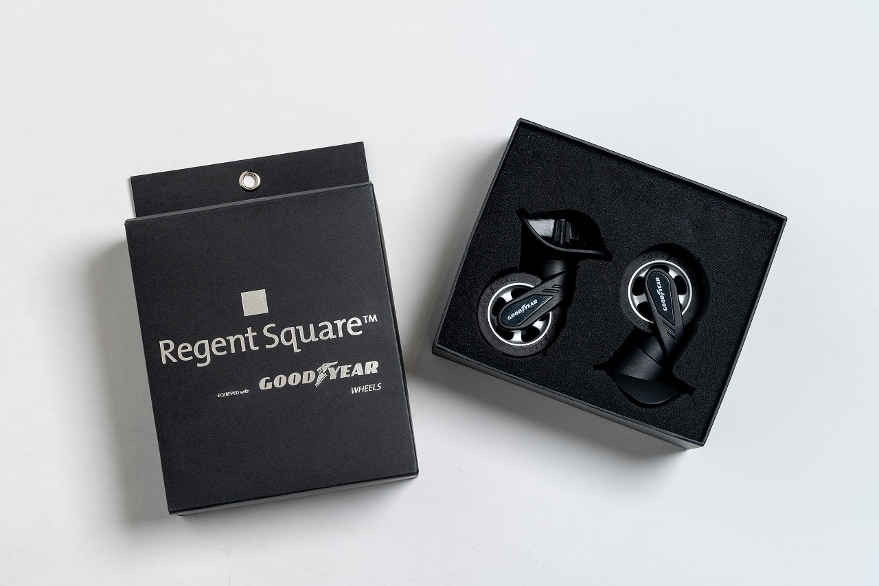 「Regent Square」はモータースポーツの最高峰F1のタイヤ部門で歴代最多の368勝を誇るグッドイヤーとタッグを組み、グッドイヤーのこれまで培ってきた技術をスーツケースのキャスターに詰め込んであなたの旅をサポートします。