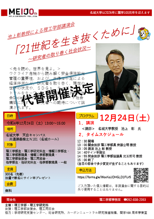 【名城大学】池上 彰教授による理工学部講演会の代替開催について