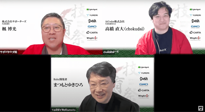 ◼︎高橋直大氏・まつもとゆきひろ氏による講演セッション『競プロの神とRubyの神のエンジニア対談 〜神々の一問一答〜』