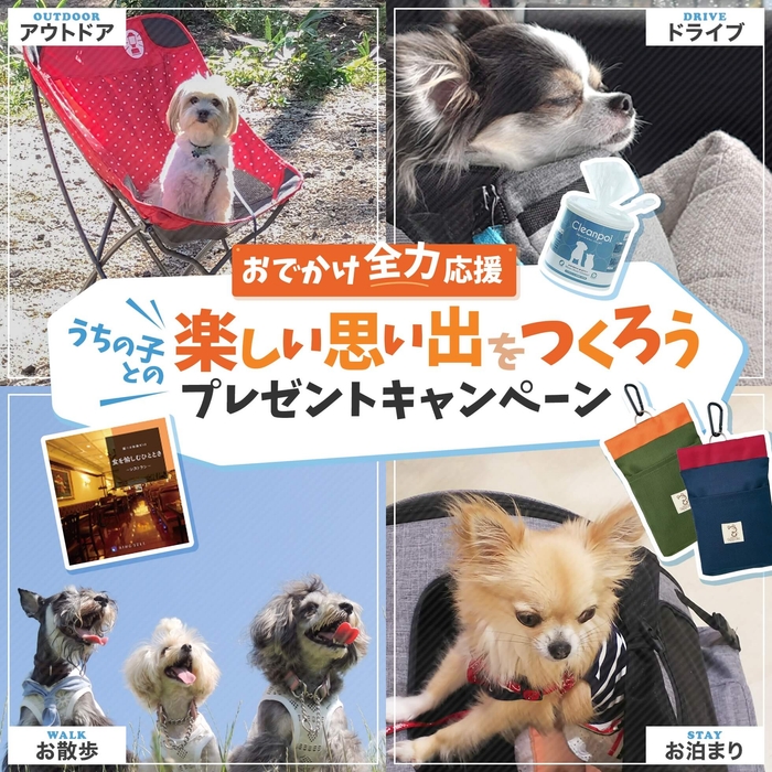 お出かけ先では、普段お家では見せない愛犬の姿がたくさん見ることができます。そんな楽しい思い出を作ってほしいという想いから、キャンペーンと、お出かけ時に注意してほしいポイントまとめ、などをご用意しました。