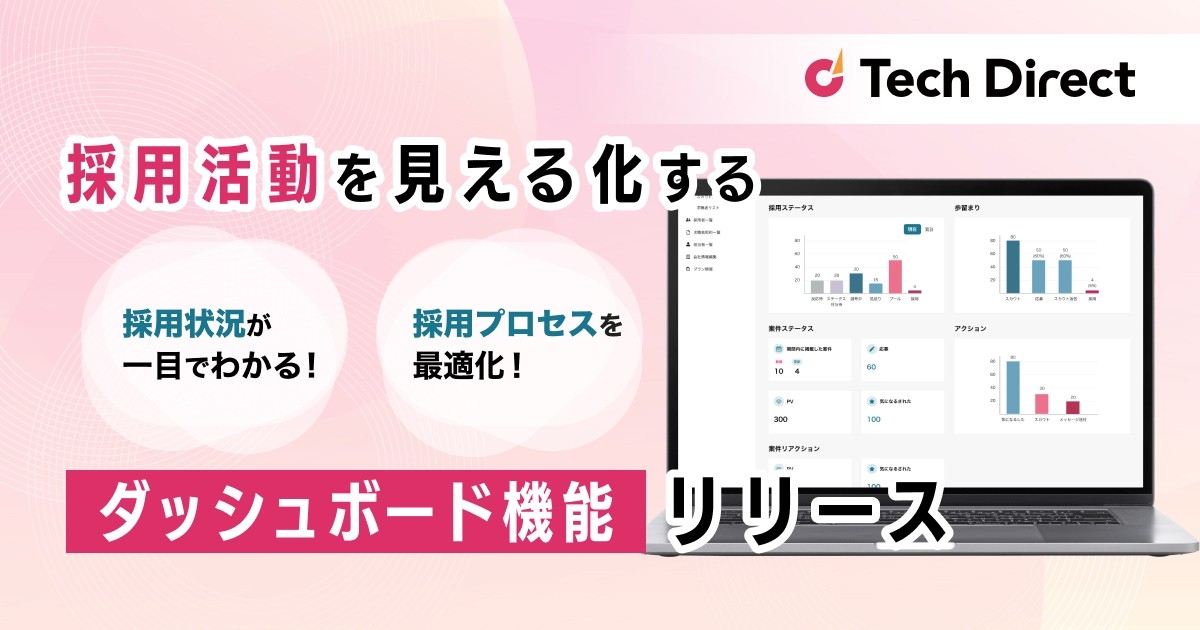 フリーランス業界最大級プラットフォーム(登録ワーカー680万人・登録企業100万社)を基盤に、IT人材&DXコンサルティングサービスを提供する株式会社クラウドワークス(本社:東京都渋谷区 代表取締役社長 兼 CEO:吉田 浩一郎 以下「当社」)が運営するハイスキルIT人材マッチングサービス「テックダイレクト」は、採用データの重要指標をリアルタイムでグラフ化し、採用プロセスを最適化するダッシュボード機能を提供開始しました。即戦力のIT人材を求める企業に対しニーズに合った人材を提供していますが、採用プロセスの最適化を行うことでリードタイムの減少や人事担当者のタイムリーな意思決定と採用プロセスを実現し、担当者間での連携や属人化への対策が可能となります。