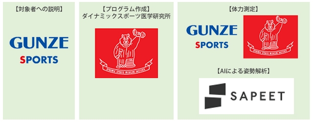 効果測定は、グンゼスポーツ株式会社とダイナミックスポーツ医学研究所による体力測定に加えて、株式会社Sapeetが開発したAI姿勢分析システム(シセイカルテ)による解析も実施する予定です。