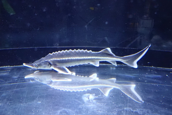 名前は体表の硬い鱗(ウロコ)が蝶の羽の形で、姿がサメに似ていることに由来しますが、サメの仲間ではありません。1990年代、茨城県つくば市の民間企業により世界初の完全養殖に成功したベステルチョウザメは、オオチョウザメのメスとコチョウザメのオスを人工的に交配して作出された品種で、キャビアや身の利用を目的に世界中で養殖された種類。