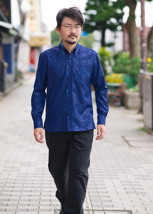 また、「MAJUN OKINAWA」のシャツは随所に華やかな沖縄のエッセンスが散りばめられているので、暗くなりがちな秋冬のコーディネートを明るく仕上げてくれます。
