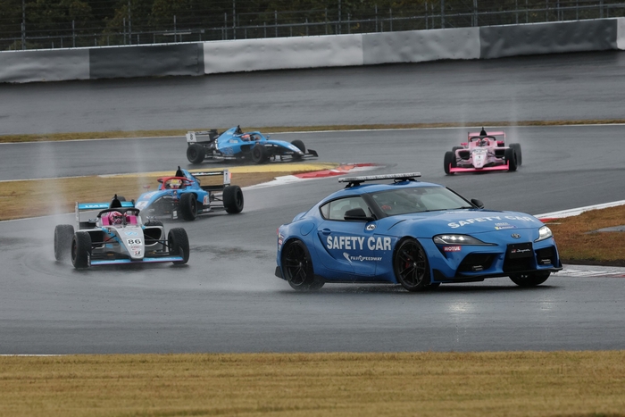 並走状態でTGRコーナーを通過した2台は続くコカ・コーラコーナーで接触。冷えた路面状況のなか、接触のあおりを受けた後続車両7台が各所でスピンや接触を喫してマシンを止め、セーフティカーが導入された。5台がここでレースを終えた一方、平川と#12 細川由衣花(富士山静岡レーシング KC-MG01)が隊列へ復帰。6周目にリスタートを迎えた。下野が再びリードを築くなか、12番手を走行する平川が着実に順位をあげて#87 山本龍(ARF☆おさきにどうぞ☆KC-MG01)に接近。2台の入賞争いはファイナルラップまで続くことに。先頭では下野がトップチェッカーを受けて今季7勝目を飾り、Rd.3のKYOJO Sprintから続く連勝記録を更新。2位に翁長、3位に斎藤が続いた。8位でレースを終えた山本はペナルティを受けた#33 岩岡万梨恵(FUKUDA racing KC-MG01)に代わって7位に繰り上がり、今季初の入賞を果たした。一方、9位フィニッシュの平川は他車への衝突とコースアウトによって30秒のタイムペナルティを受け、13位となった。
