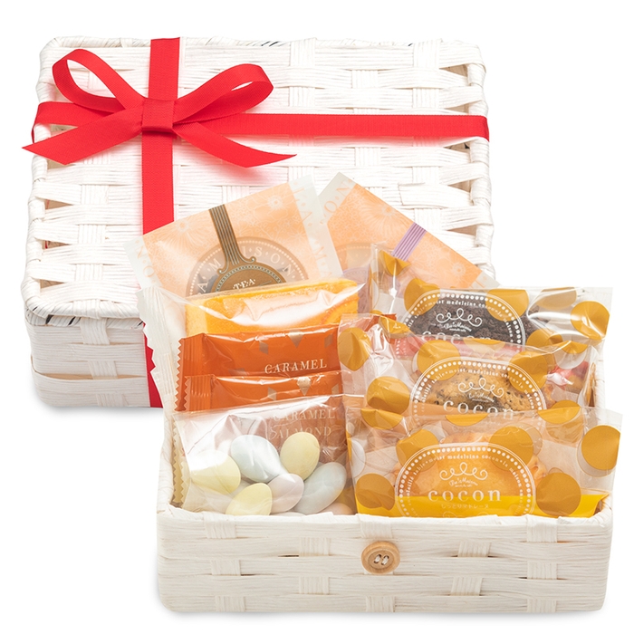 4月1日から新登場した「キャラメルサンドクッキー」や、見た目も可愛らしい「アーモンド ドラジェ」もはいった、ラ・メゾンのおすすめのギフトBOXです。