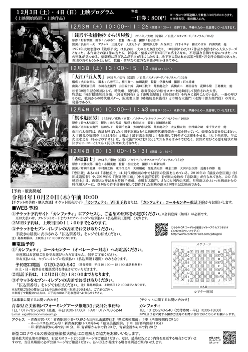 青森県立美術館映画上映会『熱狂の時代劇~35ミリフィルムで蘇る時代劇スターの競演~』開催決定 カンフェティでチケット発売