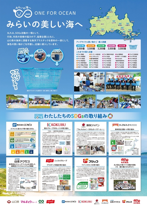 当社と協力企業8社は、山口県と県民の皆様と共に「ONE FOR OCEAN」を合言葉に、「誰もが参加できるSDGsアクション」の実践に取り組んでおります。