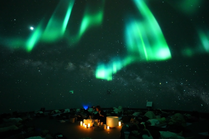 ヨガ、瞑想、音楽&ダンスで心と身体を整え解放するウェルネスイベント「AWAKEME」と共催する本イベント。プラネタリウムドームに映し出された満天の星が作り出す非日常的な空間で、ヨガとサウンドバスをお楽しみください。