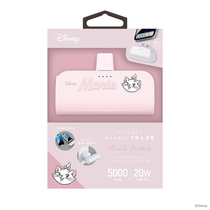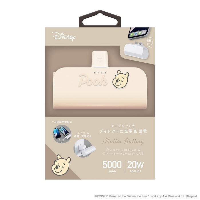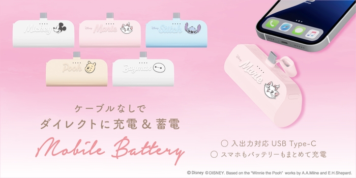 ディズニーキャラクターデザインのケーブルなしでダイレクトに充電&蓄電できるUSB Type-C 直挿しモバイルバッテリー 5,000mAhです。
