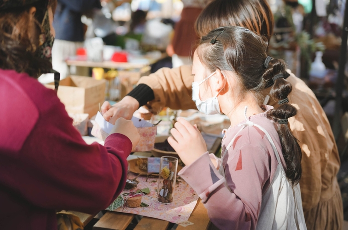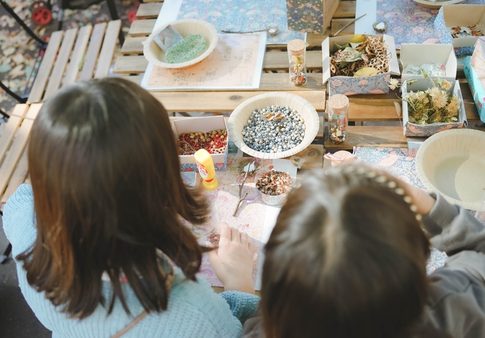 Wonderleafさんによるワークショップでは、子どもたちが小さな秋に触れ、工作を楽しみました。