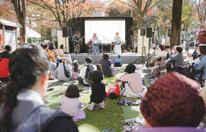 府中市内から19の個店、行政関係の2ブース合わせて21の店舗が集まったほか、秋のワークショップ、5つのステージプログラムを実施しました。