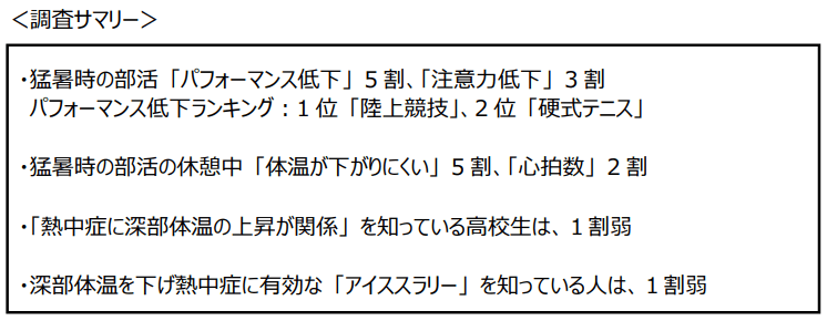 「猛暑時の運動に関する実態調査」~全国の運動部高校生約700人に実施~