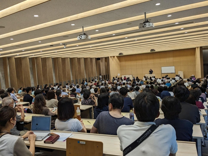 2部のトークセッションでは中世史が専門の伊藤俊一人間学部教授が、歴史的視点と「ブラタモリ」の一視聴者の視点から、番組制作にかかわる考え方や、タモリさんのエピソードなどについて代表して質問。会場には時折、大きな笑いも起こるなど和やかな雰囲気で講座は進行しました。