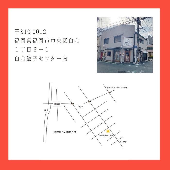 住 所 : 〒810-0012 福岡県福岡市中央区白金1丁目6−1白金餃子センター内